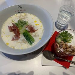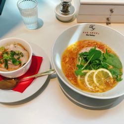 お初だったのでフロマージュにすれば良かったのかもしれませんが、通常のチャーシューがのったこちらを。丁寧な出汁感が楽しめるスープは、自分の中でもう少し塩気があっても良いなと思いましたが、出汁を感じられる丁度良いバランスなんでしょう。麺も食感と風味が良く飽きない。具材も丁寧ち調理されておりますね。セルフのルイボスティーやら飲み物選べるのも良い。