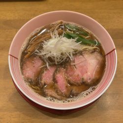 中津「Ramenがちんこ一家」の「醤油らーめん」、八王子ラーメンの様なスッキリした醤油スープと細麺、おいしい。