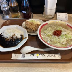いつもの「おやつ岐阜タンメン」に偽カシミールカレーとニンニクの効いた唐揚げ。