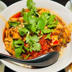 豊洲駅から徒歩5分程度、VOLVOのショールームが1階にあるプライムスクエアの2階。本場の豆板醤と山椒を使った麻婆豆腐を主軸にそえつつ、麻辣各種のお料理が揃いちょいちょいメディアでも見ていたお店。カラシビを突きたくなり初訪問。