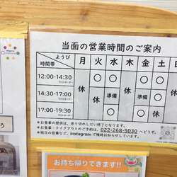 | 営業時間 | [水・金] 12:00~14:30/17:00~19:30 [火] 12:00~14:30 [土] 12:00~17:00 |