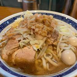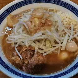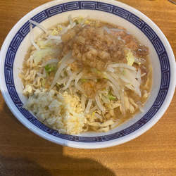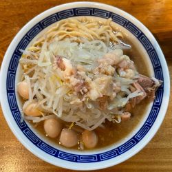 出張で姫路泊、18:15着、5人目、店前は4人まで、20mぐらい離れたコーンで待つ、20分程で着席。ヤサイアブラで。非乳化スッキリクリアスープにゴワッとした平打ち麺。ブタはちょいパサ、ヤサイはクタ。総じて美味い一杯、満足。