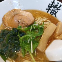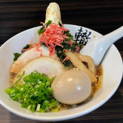鯖出汁と鶏出汁がきいたあっさりかつコクのあるスープ。細麺でスープとの相性バツグン。最後の一滴まで飲み干してしまうほどうまい。