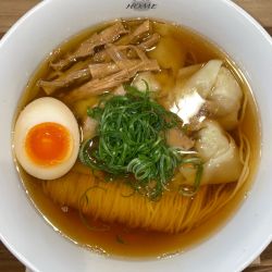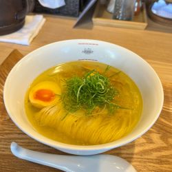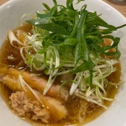 麺は細めストレート.麺線が綺麗だ.しんなりとして噛むと小麦感良い.体感150g.スープとの相性はとても良い.スープは節... 続きを見る