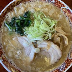 辛ねぎ、細切りチャーシュー、野菜、背脂