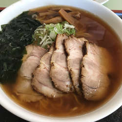 ラーメンを中心に定食や一品メニューも豊富な町中華。いろいろと気になりましたが、まずはスープの味がよくわかりそうなラーメンを。大器にスープがなみなみと、具は細切りのネギと豚肉。スープは濃いめの醤油で、鶏ガラに野菜でしょうか。ほのかに甘みもあり、結構油分もあります。麺は黄色で軟めのちぢれ麺でした。極めて普通の味わい。具を楽しむラーメンですね。