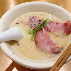 パスタ粉(強力粉のこと?)がブレンドされてるというストレート麺は、ツルツルして歯応えがいい😁粘りあるスープは鶏の旨味が凝縮されたクリーミーなスープです😆