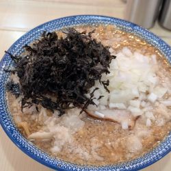 やや煮干し抑え気味の醤油スープに多目の背脂を設え増した玉ねぎにチャーシュー岩海苔をあしらった麺屋棣鄂謹製の手揉み極太麺をやや硬めに仕上げてます😁😁😁