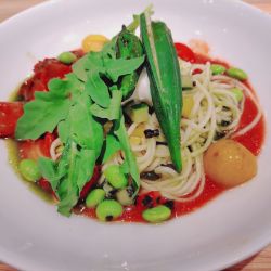 個人的な積年の課題であったガスパチョ仕立ての冷たい麺であるが、現在の行動範囲でこちらのお店に気付いて来店。