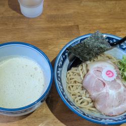 混ぜ物のない鶏白湯をブレンダーで泡立てクリーミーなつけ汁に仕上げてます😋