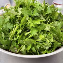 そんでこのメニューを。パクチー好きにはたまらない店です。写真はタイラーメンにパクチーをのせたもの。