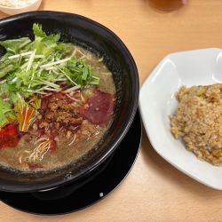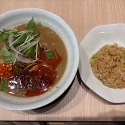 改装して一段と綺麗になった店内で白担々麺と半チャーハンのセットをいただきました🤗