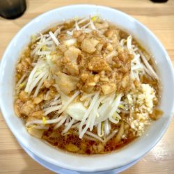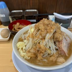 開店直後に到着、先客五名ですんなり入れました、券売機で食券を購入しコールは全部普通で注文、少し待って着丼、しっかりと混ぜてから食します、麺は固めでゴワゴワして食べごたえがあります、コッテリ濃厚な垂れに良く合います、チャーシューは大きく柔らかくて美味しいです、あっという間に完食、タレがかなり余ってしまったのが勿体なかった、ライスは必須ですね。ご馳走さまでした。