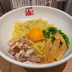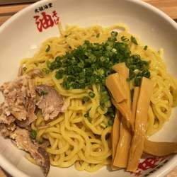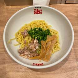 油そば並(750円)を。麺は、むっちりとした太麺。味付けは、カエシ・油、ともに控えめな印象。カエシ含め、卓上は味変アイテムで溢れる。2玉まで同一料金だし、このアプローチは楽しい。具は、小ねぎ・メンマ・豚ほぐし。夜の訪問でしたが、接客とても好印象。元祖油堂は元祖油堂 川崎駅前店以来、3店舗目の訪問でした。