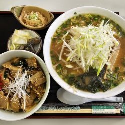 R6.2.17(土)11:50 五所川原に一昨年オープンした食堂を初訪問。店の前の駐車場に車を停め入店です。先客1名、後客8名。ラーメンメニューがメインで、カレーや定食などのメニューもあり、その中からご飯ものとラーメンがセットになった味噌ラーメンセットをオーダーです。味噌ラーメンセットは1100円で味噌ラーメンにカレーまたはスタミナ丼のハーフを選択可能で、スタミナ丼を選択し、待... 続きを見る