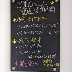| 営業時間 | 店内・テイクアウト 11:00~15:00 (L.O.14:30) / 17:00~22:30 (L.O.22:00) デリバリー受付 11:00~14:30 / 17:00~21:30 |