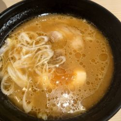 スープは魚介ベースの出汁に味噌を溶かした物で美味はあるが味噌の厚みと言うか深みも言うか...とにかく濃厚を歌ってる割にはペラいスープ。