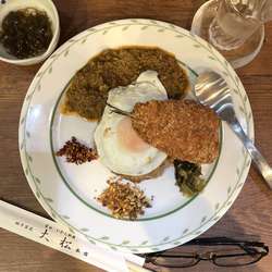 近くまで来て外にあるランチメニューを見るとこのカレーが一番高額で、他は5~600円!すげえと思いつつ入店。