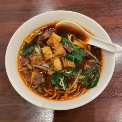 牛バラ肉マーラー麺(990円)を。スープは、濃いめの醤油ベース。マーラーとの事だが、痺れは弱く、辛さも控えめで食べやすい。麺は、シャキッとした中細ストレート。具は、青菜・もやし・牛バラ肉。牛バラ肉は大陸系の風味が漂い、こちらも濃いめの味付け。夜遅くまでやっているようなので、利便性高いですね。