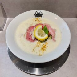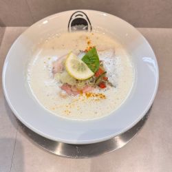 濃厚なクリーミーな鶏白湯の中に、魚介の塩ベースのカエシが効いてるんですが、それが鶏の旨みを引き立てていてめっちゃ美味い😆