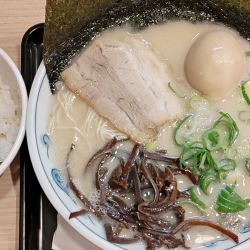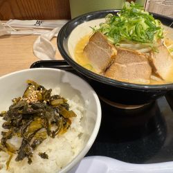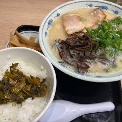 デフォか由丸ラーメンが無料なので由丸ラーメンをお願いし、高菜ライス(220)を追加で口頭注文。