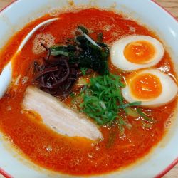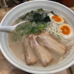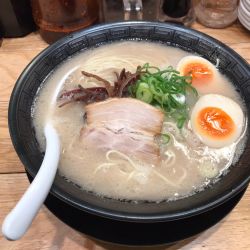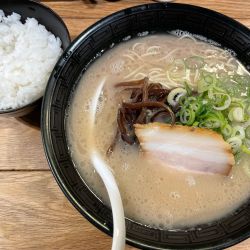 店内は木目調の和風で縦長な、現在下に棚のある厨房向きL字カウンター15席に手前に4人掛けテーブル2席が卓ありお水は卓上のピッチャーにてセルフ(壁側にハンガー掛け、下に荷物カゴ、奥2階に手洗いあり)。