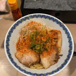 写真の一杯の到着後、器が熱いので気をつけるよう言われます。そして混ぜ混ぜ。しっかり混ぜてからいただきます。麺は太めで、もっちり感の強い、コシのある麺です。そこにカレーとニンニクの旨味、そしてチーズというギルティな組み合わせ。これ... 続きを見る