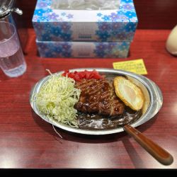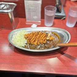 5の付くカレーの日に、ランチで訪問。ゴゴーカレー(小)650円に、トッピングチケットを添えて、ハンバーグでリクエスト。いつもの甘辛いルーに、熱々のハンバーグが相性抜群。シャキシャキ食感のフレッシュなキャベツにマヨネーズを添えて、卓上福神漬けと共にご馳走様です。