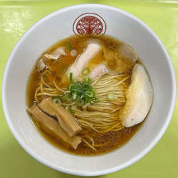 透明度の高い清湯スープに黄色い鶏油が浮いている。