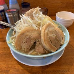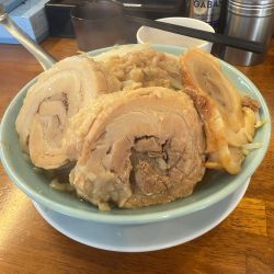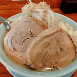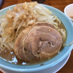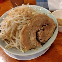| 備考 | 二郎インスパイア系 ラーメン 麺種=わしっと:低加水平打ち/つるっと:多加水丸型 麺の量=並盛:300g/大盛:400g/麺増し:+100g 豚の量=普通:1枚/豚増:3枚/豚一枚:+1枚 野菜の量=普通:200g/少なめ:100g/マシ:300g) まぜ麺 麺の量=500g/麺増し:+100g |
