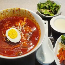 【注文】烈火麺ランチ(1100円)。この店もQRコードから注文サイトに誘導してスマホから注文するタイプの店だ。