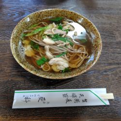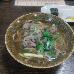 しばしメニュー眺めて、未食のかも南そばを、相方はカレー南うどんをw