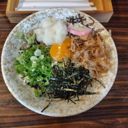 おつゆはあっさり、かつお昆布なお出汁、キリっとしたかえしのエンミとかつおが強めかな?