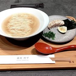 具は、小ねぎ・海苔・チャーシュー・すだちかな?。別皿でなくても良い気はするが、どうなんだろ。この系統にすだちの提案は面白い。