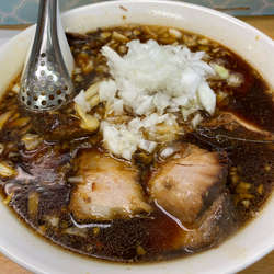 肉出汁だけじゃない旨味ベースにバチっと立つ宮醤油のチャーシュー返し、火が通る玉葱からの香りと旨味がラードに移り旨い☆彡
