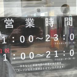 | 営業時間 | [月~土] 11:00~24:00 (L.O.23:30) [日・祝] 11:00~21:00 (L.O.20:45) |