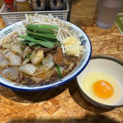 = 辛口スタミナ 1辛 半麺 半肉 半野菜 1200+生玉子100=