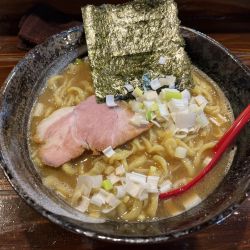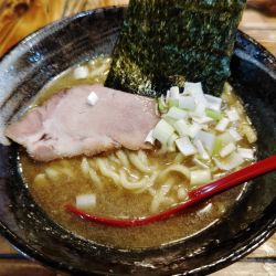 初訪時から大きく印象ゎ変わらず、動物系の土台に煮干しの厚みある主張のスープ、スープだけが旨い☆彡まま…。
