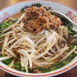 具は、にら・もやし・挽肉。にらはどっさり、もやしはシャキシャキなのが嬉しい。