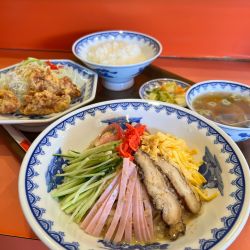 約1年3ヶ月ぶりの再訪、前回と同じく冷やし中華のセットメニューを。