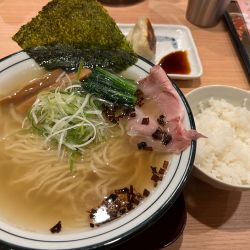 季節限定をお目当てに訪問。ありましたありました♪季節限定♪2代目ですと?いいですね〜、そそられます。煮卵トッピングの特製をチョイス。程なく着丼。スープはしっかり出汁がきいていて、塩味バッチリ。焦がしネギが浮いています。おや?中央に梅干しが鎮座しています。タネ付きです。後に回してっと、うんチャーシューとメンマはいつもと一緒。麺もしっかりしていていつも通り美味しい。満足のいっぱいで... 続きを見る