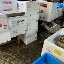 スチロールのトロ箱が積まれている。