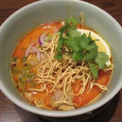 高島屋の9階レストランフロアに新しく入ったタイ料理の店ということで、全体的に高めの値段設定。ココナツミルクの甘さが感じられるが、辛さもしっかりあり、甘辛でスパイシーなカレー風味のスープが楽しめる。後半カットレモンをつぶし酸味を加えるとまた少し違った表情になった。
