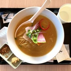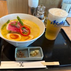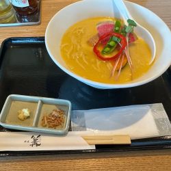 スープはポタージュの様なトロっとした濃厚な仕上がり。鶏特有のクセも嫌味なく伝わり良い感じ。中細麺は伸びのタイプでスープにマッチ。具材はカボチャ、筍、パプリカ、カイワレ、サヤエンドウ、赤カブ。... 続きを見る