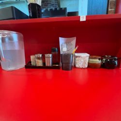 店内は豚骨スメルはほどしない赤基調の、現在下に棚のある厨房向きL字カウンター9席に4人掛けテーブル席が2卓、2卓の計2卓ありお水は卓上のピッチャーにてセルフ(入って奥左側にお手... 続きを見る