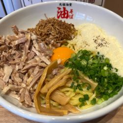 | 備考 | 「中華一番(移転)」「東京チカラめし」「麺処 ながい」「げんき」「麺友」跡地 (冠詞無用) PayPay使用可 株式会社ギフトホールディングス ブランド ~こだわり~ 中華麺用粉にパスタ粉を配合し作り上げた風味豊かでモッチリ感のある「油そば専用麺」。麺は大盛・特盛も選ぶことができ、黒烏龍茶・ジャスミンティーなどのドリンクバーや締めのスープも無料。追加トッピング(チーズなど)と10種類以上の卓上調味料で自分だけの味変が楽しめます! |