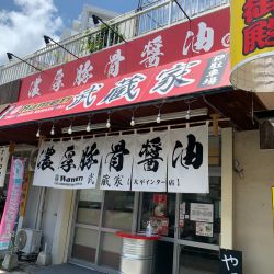 那覇市の隣の浦添市。以前にそこの武蔵家に行ったのですが、仄聞するところによると同市にもう一店舗できたとのこと。てことで、早速伺いました。すべてフツーにしまして、半ライスもつけてワシワシ。おおっ、ここもウマいですねー。あまり家系には詳しくないのですが、大満足の一杯。店内には吉祥寺武蔵家の藤崎氏なる方のお祝いも掲げられていました。へぇ、吉祥寺店の直系かいな?
