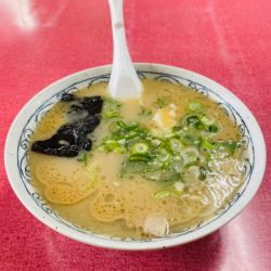 スープ:表層の油は他店との差別化を図るべく相当量入っています。久留米ならではの豚骨臭は僅か、油層の下のスープは熱々。あっさり甘めの味わいで、スープの底には溶... 続きを見る