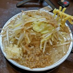 オープンほやほやのお店に訪問。最近の二郎系は分かりやすいが、さらに分かりやすい。連食だったので券売機で並(150g)をプッシュ。お好みは紙にしるしをつける方式。ヤサイ・アブラをマシ、濃さ・ニンニクを基本でオーダー。みごとな野菜タワーで登場。野菜には少し味が付いており、増した油でさらに野菜がうまくなる。あっという間に麺が見えてくる。麺は二郎系... 続きを見る
