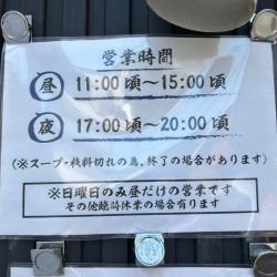 | 営業時間 | 11:00〜15:00/17:00〜20:00 [日] 11:00〜15:00 ※売り切れ次第終了 |